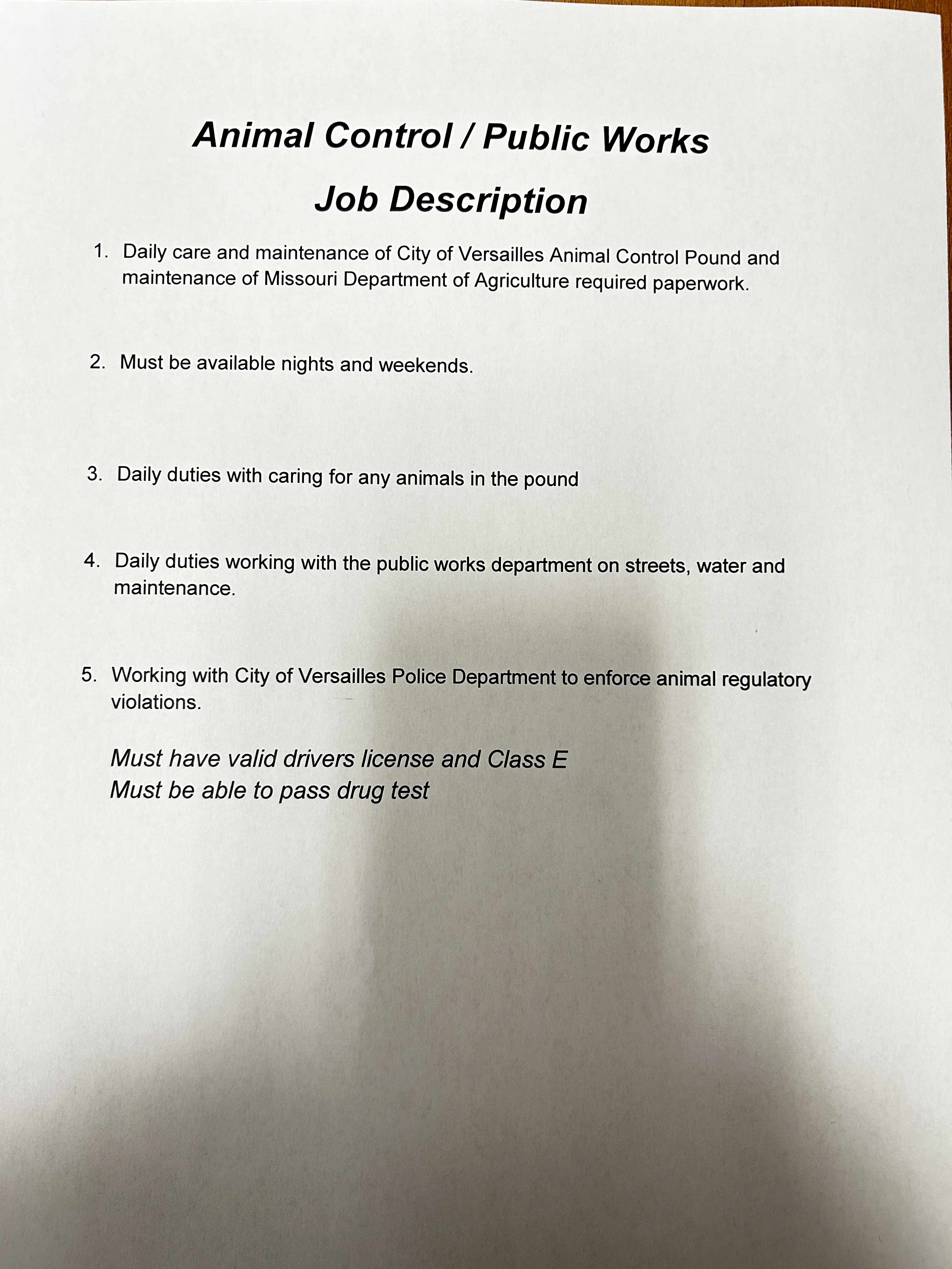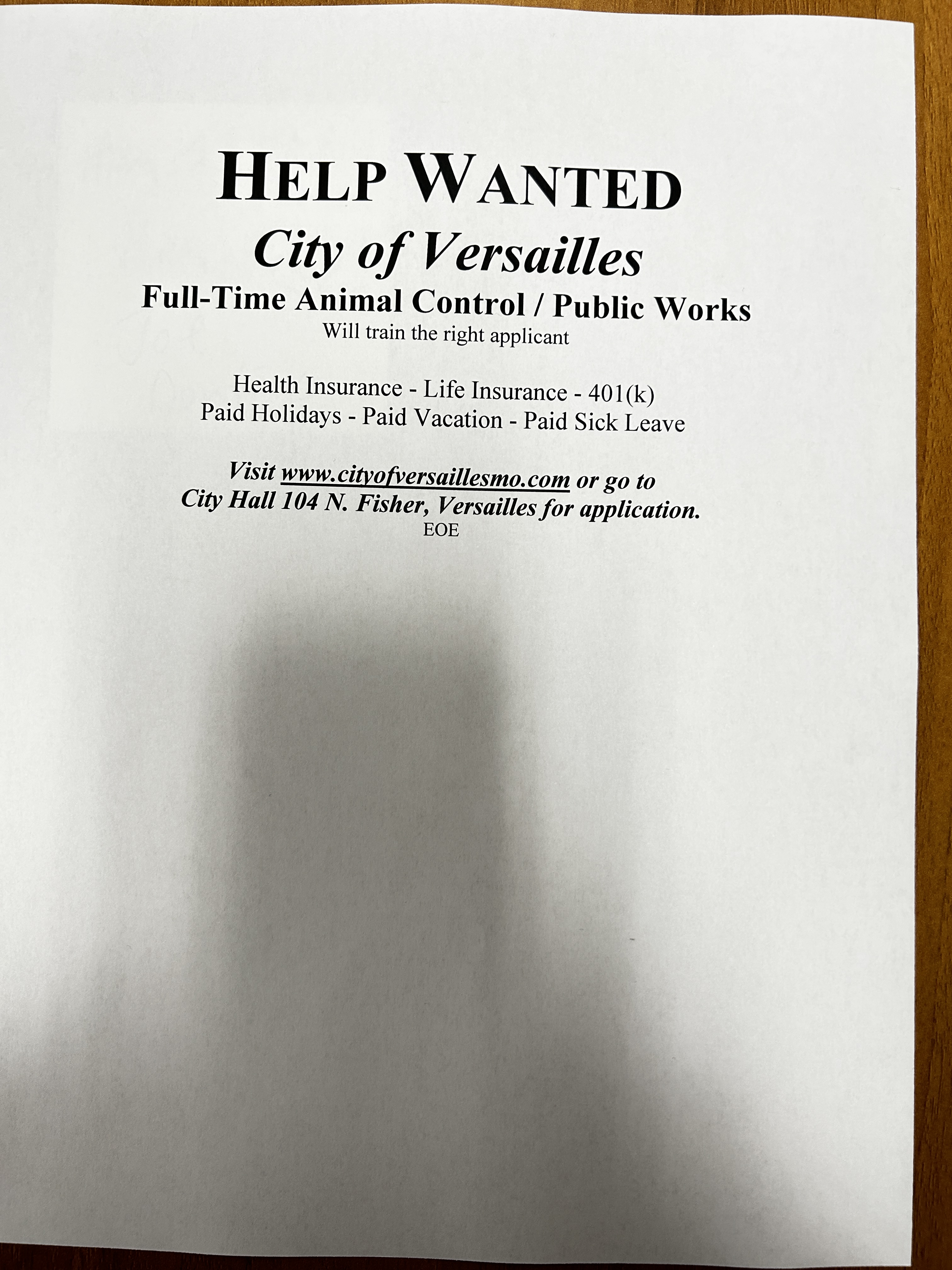 [ARCHIVED] Help Wanted Animal Control / Public Works